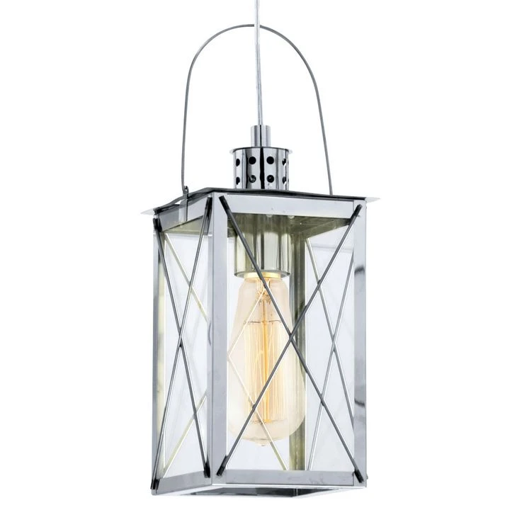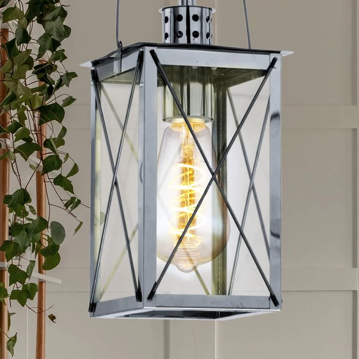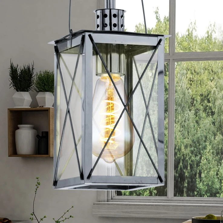 Hängeleuchte, Laternen-Design, Glas, Klar, Chrom, H 110 Cm