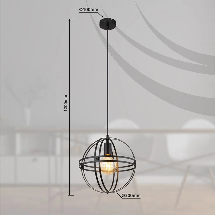 Diese moderne Hängeleuchte überzeugt durch eine tolle Farbgebung und Materialien. Aus einer runden Deckenbefestigung verläuft ein 1,2 m langes Kabel zu einer E27 Fassung, welche von einem formschönen runden Metallgehäuse in Schwarz (Ø30 cm) ummantelt wird. Die E27 Fassung ermöglicht Ihnen die freie Auswahl, bis zu einer maximalen Leistung von 60 Watt, selbst über Lichtfarbe und Helligkeit zu bestimmen. Aufgrund von Stromersparnis und Langlebigkeit empfehlen wir LED Leuchtmittel.