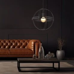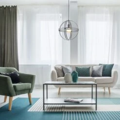 Diese moderne Hängeleuchte überzeugt durch eine tolle Farbgebung und Materialien. Aus einer runden Deckenbefestigung verläuft ein 1,2m langes Kabel zu einer E27 Fassung welche von einem formschönen runden Metallgehäuse in Schwarz (Ø40 cm) ummantelt wird. Die E27 Fassung ermöglicht Ihnen die freie Auswahl, bis zu einer maximalen Leistung von 60 Watt, selbst über Lichtfarbe und Helligkeit zu bestimmen. Aufgrund von Stromersparnis und Langlebigkeit empfehlen wir LED Leuchtittel.