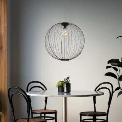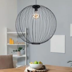 - DESIGN: Die Hängeleuchte punktet mit ihrem Lampenschirm. Der schwarz-matte Metallgeflecht Schirm sorgt dafür, dass die Leuchte zum Eyecatcher Ihren Wohnräume wird.