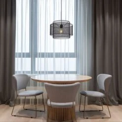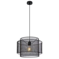 Hängeleuchte, Metallgeflecht, Rund, Schwarz, H 120 Cm