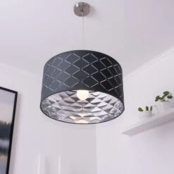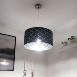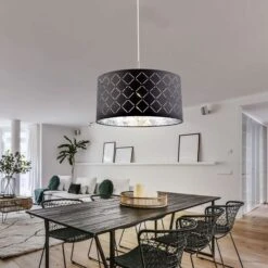 Vielseitig einsetzbar gibt diese Leuchte durch die Dekorstanzungen und den silber-metallischem Farbton im Inneren des Lampenschirms ein schönes Licht-Schattenspiel wieder.