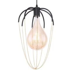 Hängeleuchte, Schwarz, Käfig, Goldfarben, H 120 Cm