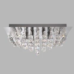 Diese 6flammige quadratische Hanna Chrom Deckenleuchte mit klaren Kristallkugeln passt perfekt zu jeder Decke in Ihrem Zuhause. Das luxuriöse Licht passt bündig zur Decke und verfügt über sechs Lampen, die von dekadenten Kristallverzierungen und Kugeln umgeben sind. Und die elegante quadratische, verspiegelte Rückplatte vervollständigt den Look dieses modernen Kronleuchters.