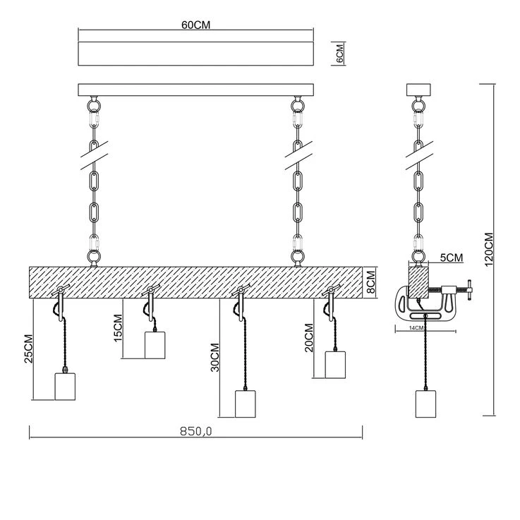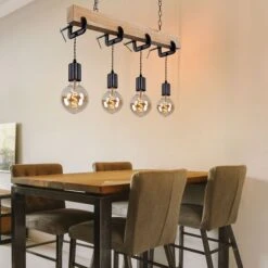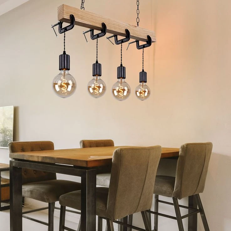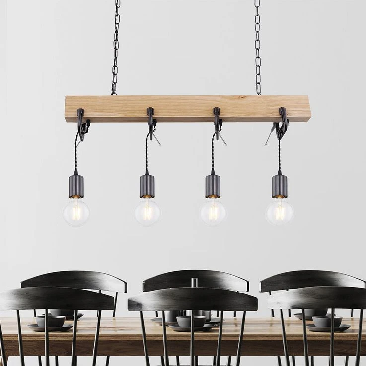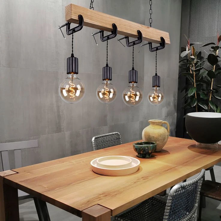 Die Lampe hat eine Gesamtlänge von 120 cm und ist mit vier E27 Fassungen ausgestattet. Die Leuchtmittel sind im Lieferumfang nicht enthalten. Somit können Sie das für Sie passende Leuchtmittel (max. 60W) auszuwählen und die Lichtfarbe und Lichtstärke selbst bestimmen.