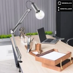 Darüber hinaus kann der Lichtstrahl perfekt auf das zu beleuchtende Ziel gerichtet werden. Möglich ist dies durch den flexiblen Leuchtenarm. Der Leuchtenarm ist höhenverstellbar und kann Ihren individuellen Bedürfnissen angepasst werden. Zudem besticht die Klemmleuchte noch durch ihr leicht futuristisch angehauchtes Design.