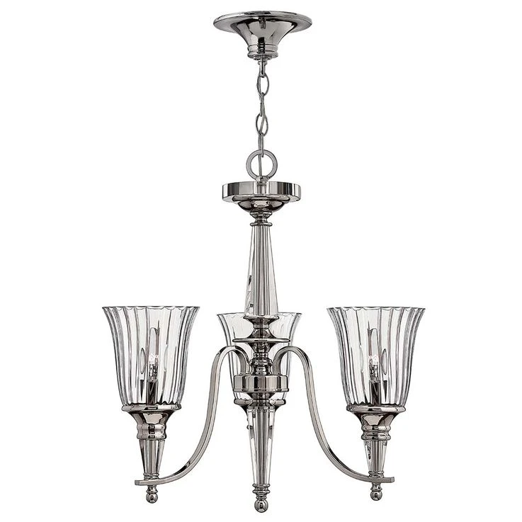Chandon ist eine sehr elegante, zeitlose Kollektion mit einem polierten Sterling-Metall-Finish und einer massiven Kristallmittelsäule und Endstücken sowie becherförmigen mundgeblasenen gerippten Gläsern.
