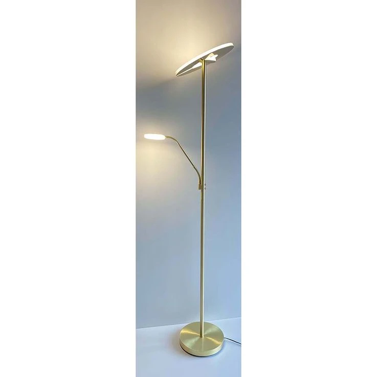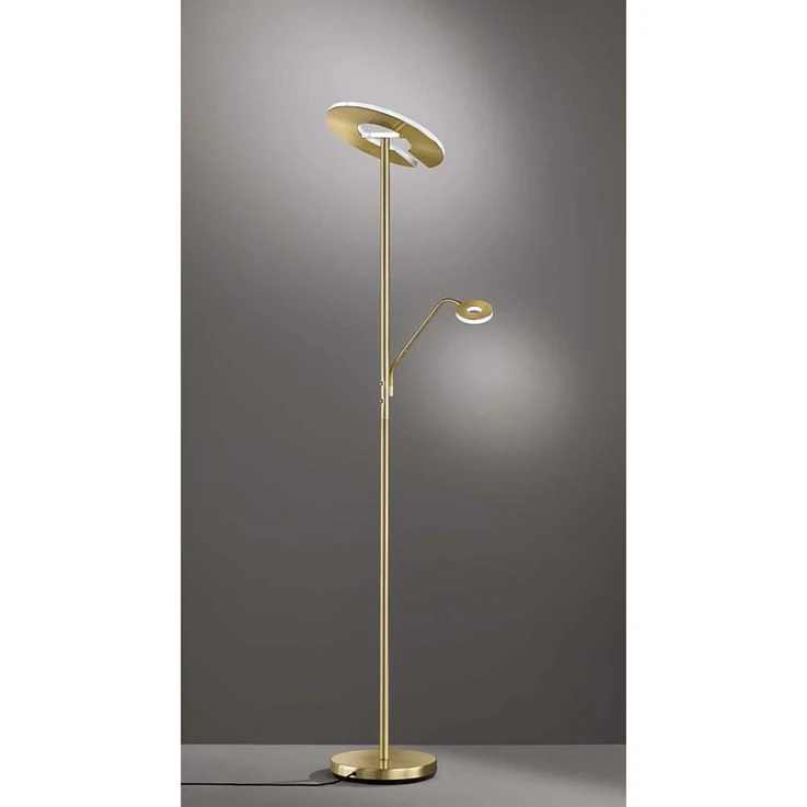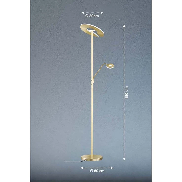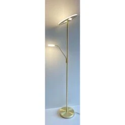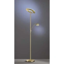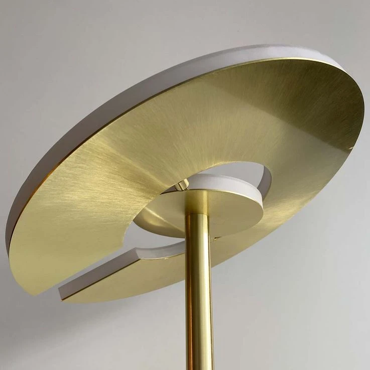 Suchen Sie noch nach einer gemütlichen Zimmerbeleuchtung für Ihre Leseecke und als Alternative zum hellen Deckenlicht? Dann finden Sie in Gedanken schonmal einen perfekten Platz für diese dekorative Stehleuchte. Auf den ersten Blick ist es eine klassische Leuchte im minimalistischen Design, doch auf den zweiten Blick verbergen sich in ihr zahlreiche Features. Lassen Sie uns diese doch im Folgenden gemeinsam entdecken. Meistens ist das Licht im Raum doch nie da, wo es wirklich gebraucht wird. Insbesondere in den Abendstunden möchten Sie gerne noch Lesen oder anderen Freizeitaktivitäten nachgehen, für die Sie ausreichend Licht brauchen. Dieses Problem löst die Stehleuchte Dent durch einen beweglichen Arm. Sie können das Licht genau dort ausrichten, wo Sie es haben wollen. Stellen Sie die Leuchte zum Beispiel neben die Couch und richten Sie den Lichtkegel auf ihr Buch und wieder nach oben, wenn Sie den Raum allgemein beleuchten wollen. Die LED ist über einen Taster stufenlos dimmbar, damit Sie es sich zu jeder Tages- und Nachtzeit so richtig gemütlich machen können in Ihren Räumen. Der Fuß der Leuchte und auch das Gestell sind aus Metall gefertigt. Die Farbe in Messing fügt sich zeitlos-schön in jede Raumausstattung ein, so dass Sie nicht nur heute, sondern auch morgen noch Freude an dieser Leselampe haben. Darüber hinaus verzichtet die Leuchte auf alle überflüssigen Schnörkel und Detail.