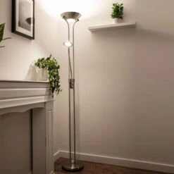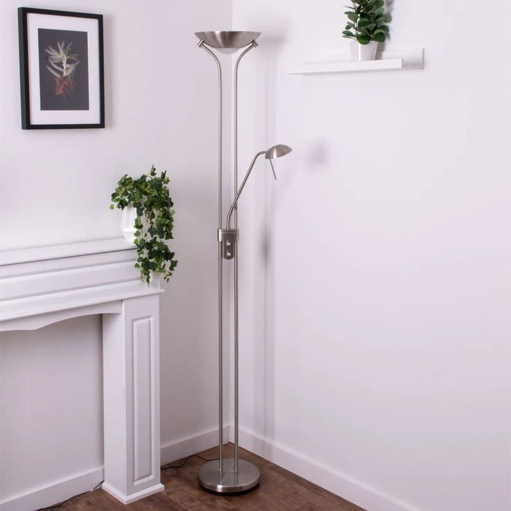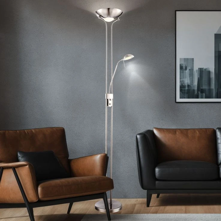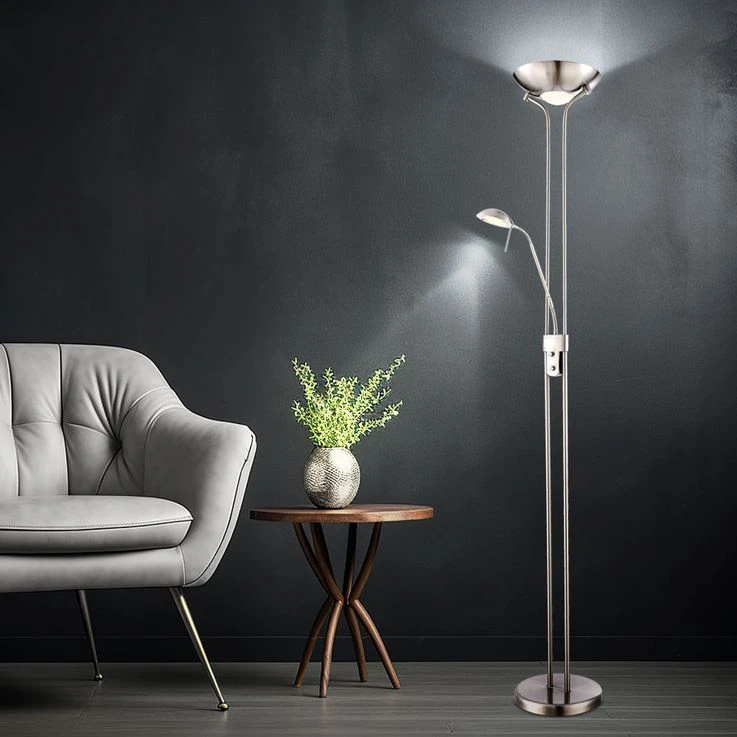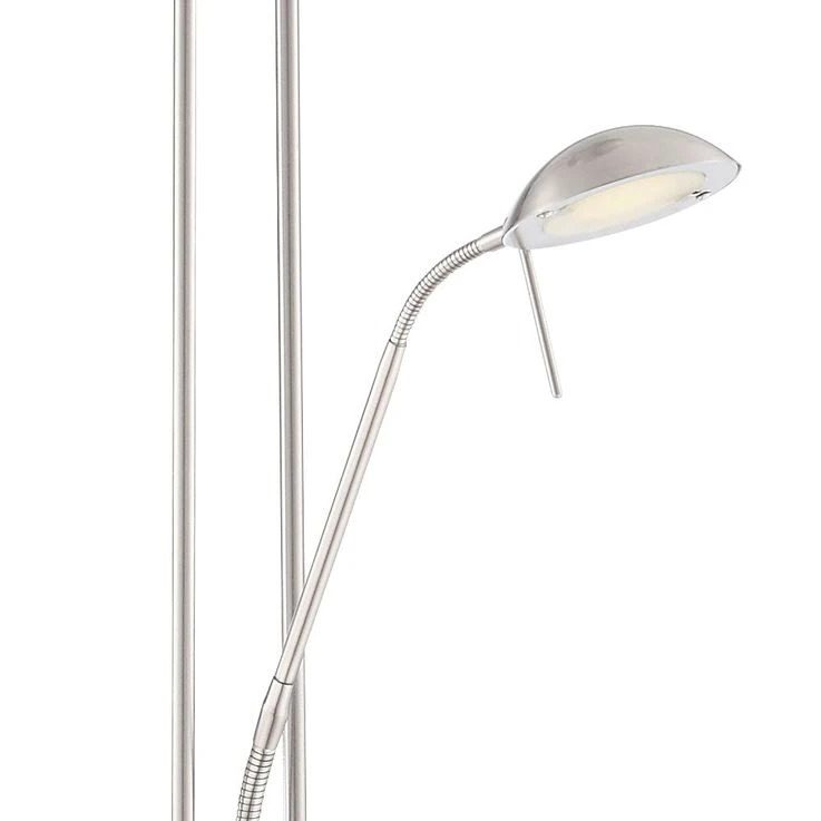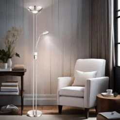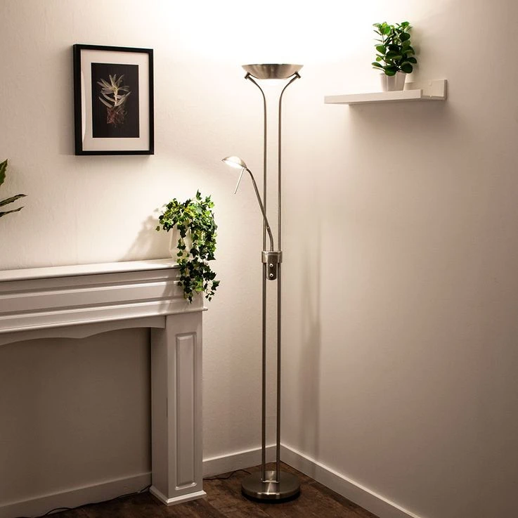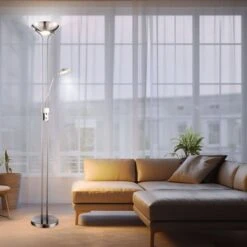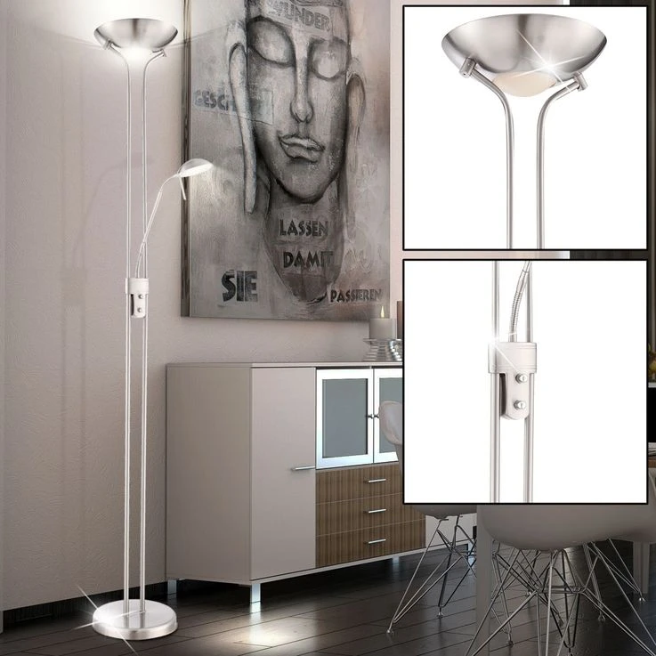 Setzen Sie mit dieser Standleuchte einen neuen Glanzpunkt in Ihrem Wohnzimmer und überzeugen Sie sich von der Leuchtkraft und Ausstrahlung dieser Lampe. Durch einen beweglichen Leuchtarm in der Mitte dieser hochmodernen Stehlampe, ist diese sehr flexibel und universell einsetzbar. Des weiteren überzeugt dieses Meisterwerk der Ingenieurskunst durch den wunderbaren Mix aus mattem Nickel und warmweißem Licht.