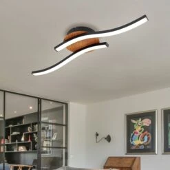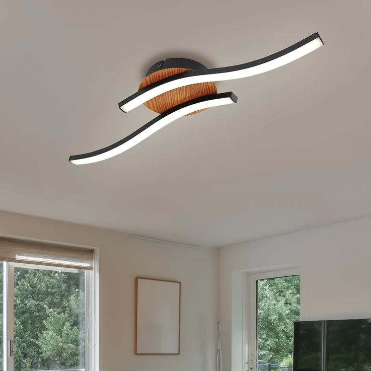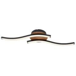 LED Deckenleuchte, 2 Flammig, Holzoptik, Schwarz, L 51cm
