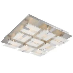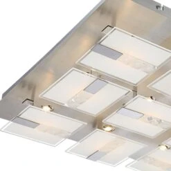 Diese quadratische Deckenleuchte mit einem Materialmix aus Chrom und satiniertem Glas macht in nahezu jedem Raum eine gute Figur. Neun leistungsstarke LED Leuchtmittel sorgen für genügend Leuchtkraft um Ihren entsprechend gewählten Wohnraum perfekt zu erhellen.