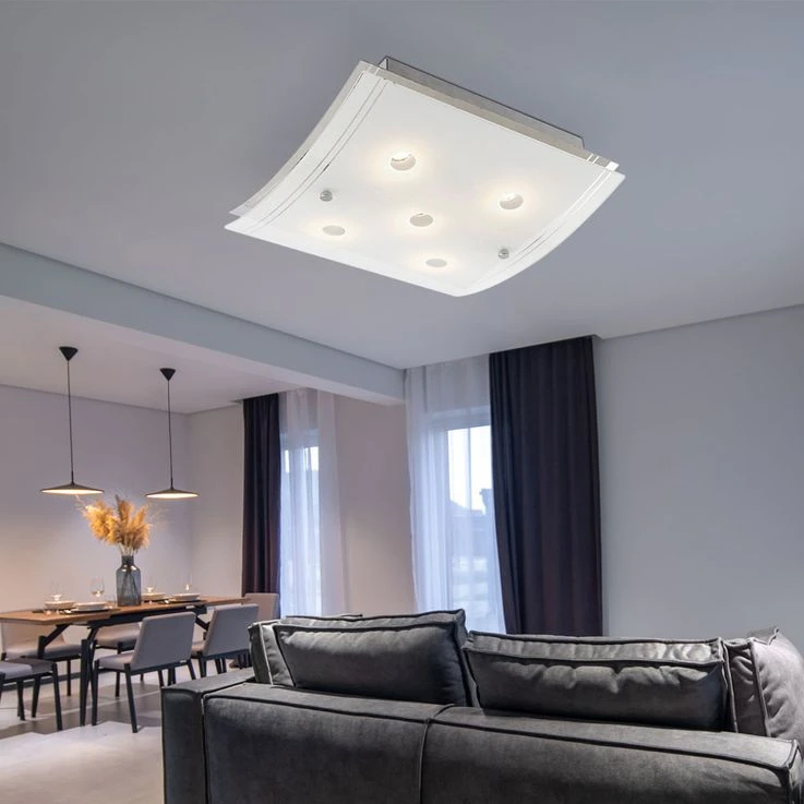 Vielseitigkeit, Effizienz und Klasse sind die wohl am stärksten hervorgehenden Eigenschaften dieser bezaubernden Deckenleuchte. Das meisterhafte Design dieser Lampe überzeugt nicht nur durch die Vollendung im Gesamtbild, sondern vielmehr durch die individuelle Einsetzbarkeit in nahezu jedem erdenklichen Wohnraum.