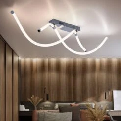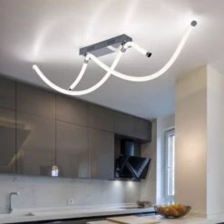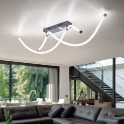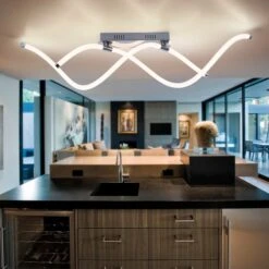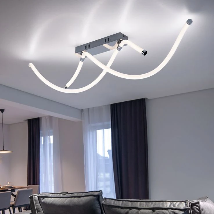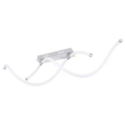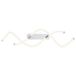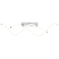 In einem modernen Stil präsentiert sich diese wellenförmige Deckenleuchte. Die Leuchte kann man über 3 Stufen per Wandschalter schalten. Die aus Metall und Kunststoff verfügt über eine weiße Farbgebung in Kombination mit einer opal- verchromten Ausführung. Ob im Wohnzimmer, im Schlafzimmer oder im Flur, diese Lampe macht überall eine designvolle Figur.