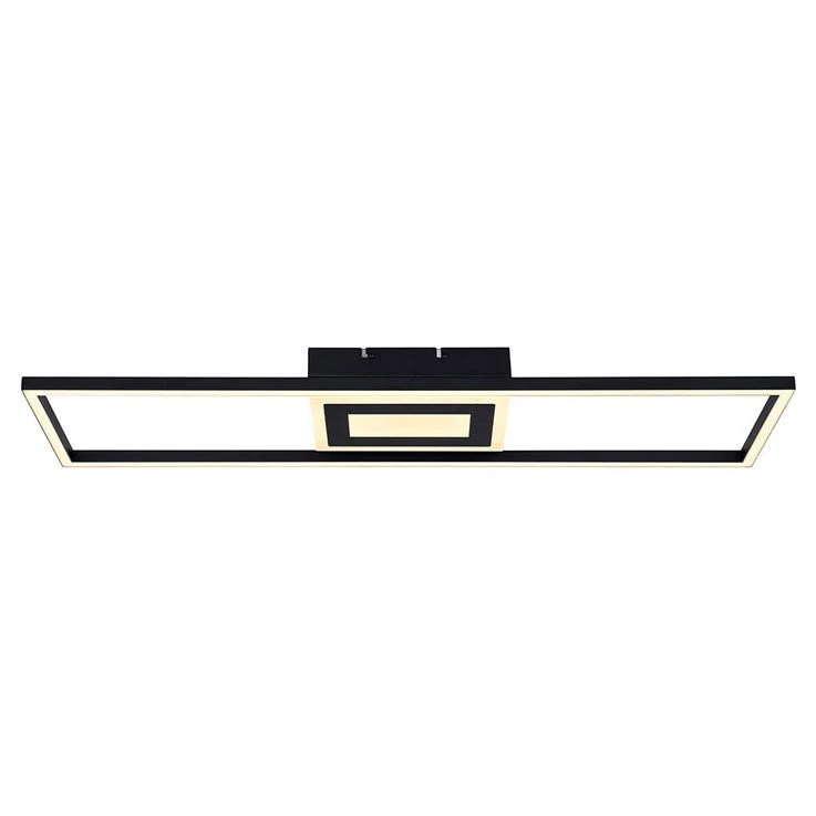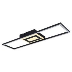 - MATERIAL/FARBE: Die 81 cm lange Deckenleuchte besteht aus einem schwarzen rechteckigen Metallrahmen, der mit opalenem Acryl versehen und an einem schwarzen Metallquader fixiert ist.