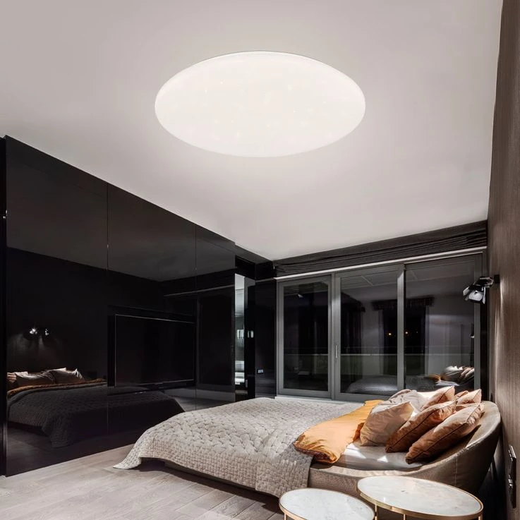 - DESIGN: Das dezente, aber dennoch stilvolle Design der Leuchte zeichnet sich durch ihre runde Form, sowie durch die Weißfärbung aus. Der Sterneneffekt macht die Leuchte zu einem echten Hingucker.