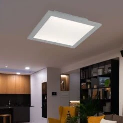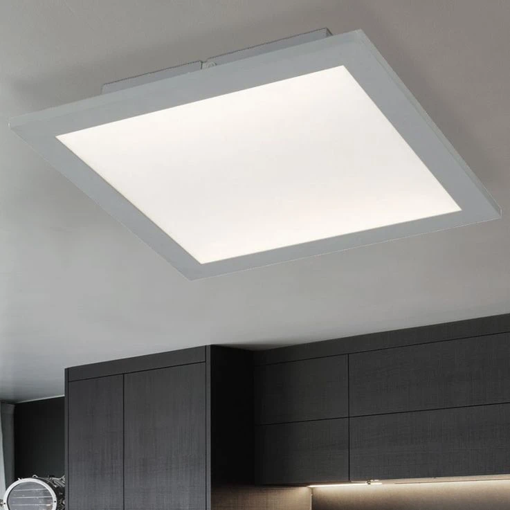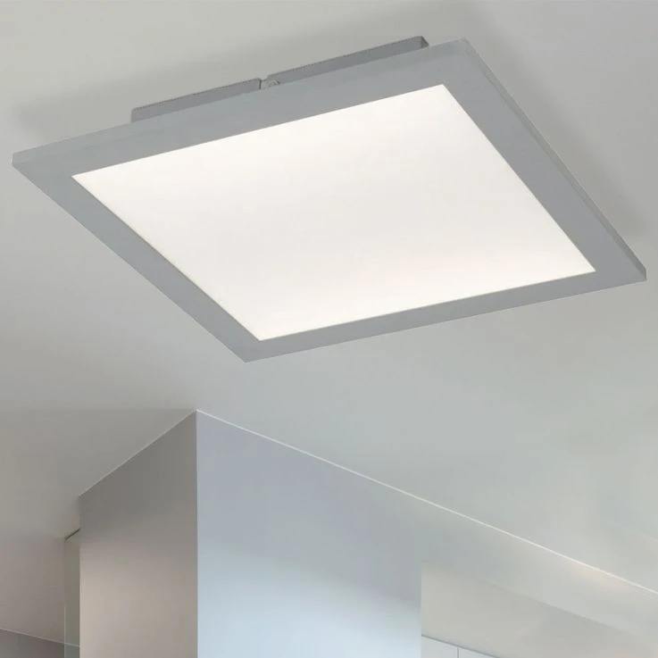 - FORM/FARBE: Die quadratische Lampe verfügt über einen silbernen Rahmen. Das Leuchtmittel ist von einer weißen Blende verdecken, dadurch wird das Licht gleichmäßig verteilt.