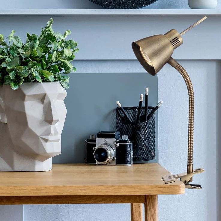 LED Klemmleuchte, Altmessing, Spot Beweglich, Kabel 1,5 M