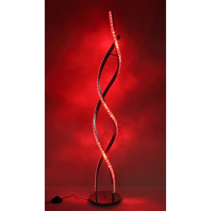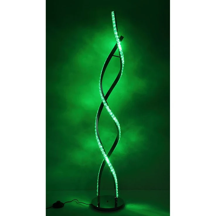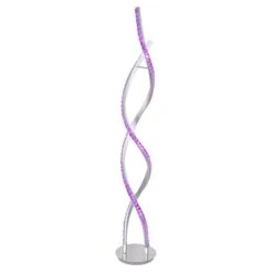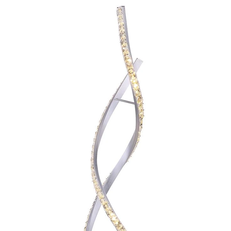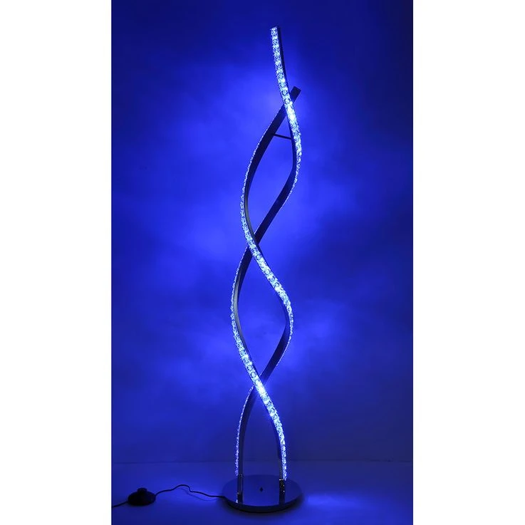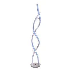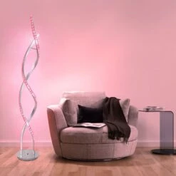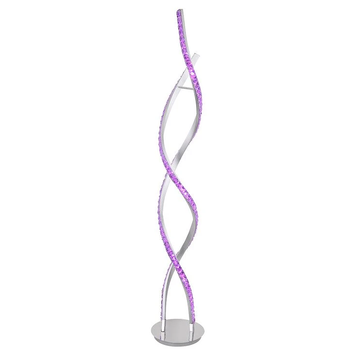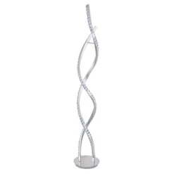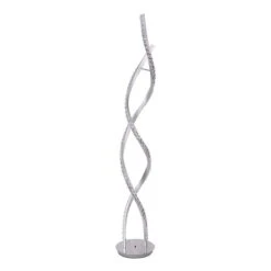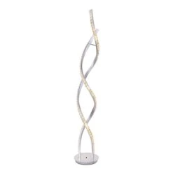Diese Chrom Stehleuchte mit gebürstetem Aluminium verzaubert mit den klaren K5 Kristallen. Das Licht dieser dimmbaren Stehleuchte erstrahlt durch die K5 Kristalle besonders schön. Mittels Fernbedienung lässt sich die Farbe wechseln und fixieren. Diese 116 cm hohe Schönheit mit zwei gedrehten Armen leistet dank des 24 Watt LED Leuchtmittels bis zu 1000 Lumen starkes Licht bei einer angenehmen warmweißen Lichtfarbe von 3000 Kelvin.