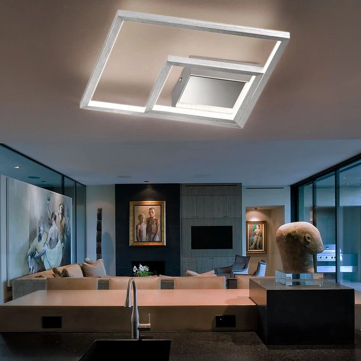 Mit der Deckenleuchte MANAS steuern Sie zielsicher einem geschmackvollen Ambiente entgegen. Die Oberflächen schimmern in gebürstetem Aluminium und verleihen ihrem Interieur Glanz und Erhabenheit, welche beim Einschalten aktiv in Szene gesetzt werden.