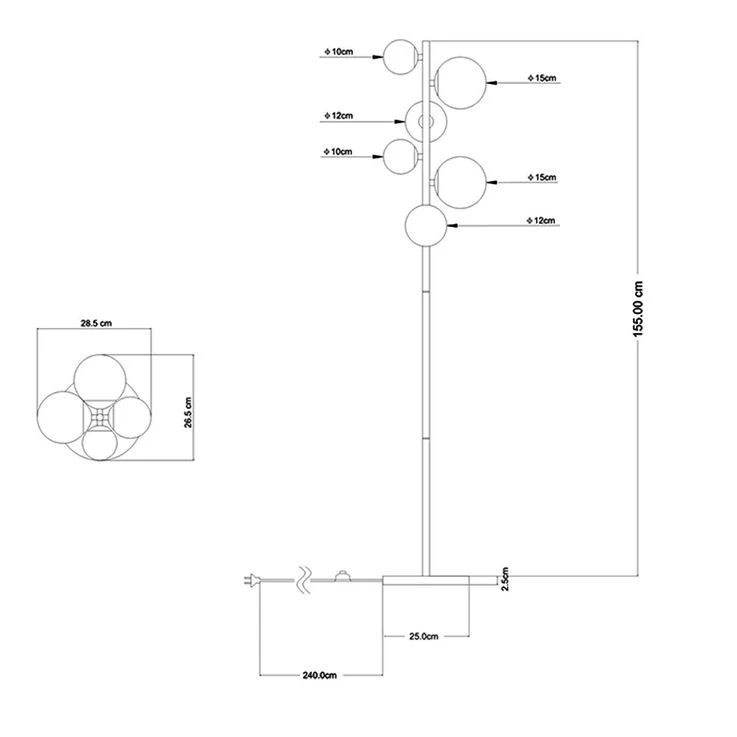 • Länge x Breite x Höhe in cm: 28,5 x 26,5 x 155