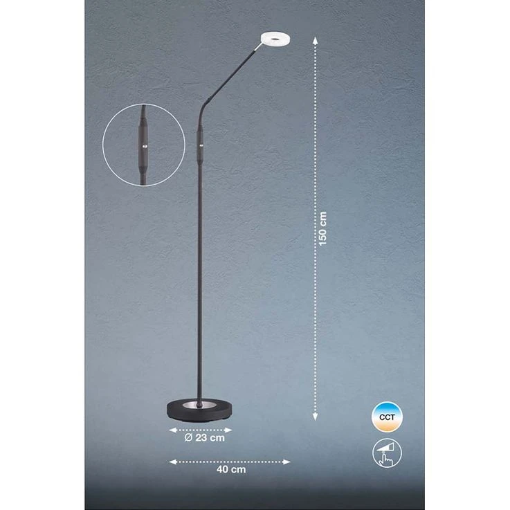 Suchen Sie noch nach einer gemütlichen Zimmerbeleuchtung für Ihre Leseecke und als Alternative zum hellen Deckenlicht? Dann finden Sie in Gedanken schonmal einen perfekten Platz für diese dekorative Stehleuchte. Auf den ersten Blick ist es eine klassische Leuchte im minimalistischen Design, doch auf den zweiten Blick verbergen sich in ihr zahlreiche Features. Lassen Sie uns diese doch im Folgenden gemeinsam entdecken. Leuchte mit einem beweglichen Leuchtarm Meistens ist das Licht im Raum doch nie da, wo es wirklich gebraucht wird. Insbesondere in den Abendstunden möchten Sie gerne noch Lesen oder anderen Freizeitaktivitäten nachgehen, für die Sie ausreichend Licht brauchen. Dieses Problem löst die Stehleuchte Dent durch einen beweglichen Arm. Sie können das Licht genau dort ausrichten, wo Sie es haben wollen. Stellen Sie die Leuchte zum Beispiel neben die Couch und richten Sie den Lichtkegel auf ihr Buch und wieder nach oben, wenn Sie den Raum allgemein beleuchten wollen. Stehleuchte mit dimmbaren LED Die LED ist in drei Stufen dimmbar. Sie können zwischen 2700, 3350 und 4000 Kelvin wählen. Über einen Tastdimmer können die Lampen sogar stufenlos gedimmt werden, damit Sie es sich zu jeder Tages- und Nachtzeit so richtig gemütlich machen können in Ihren Räumen. Zeitloses Design aus Metall in dezenten Farben Der Fuß der Leuchte und auch das Gestell sind aus Metall gefertigt. Die Farbe in Sandschwarz fügt sich zeitlos-schön in jede Raumausstattung ein, so dass Sie nicht nur heute, sondern auch morgen noch Freude an dieser Leselampe haben. Darüber hinaus verzichtet die Leuchte auf alle überflüssigen Schnörkel und Details. Wir freuen uns auf Ihre Bestellung und wünschen Ihnen viel Freude mit unserer Stehleuchte Dent.