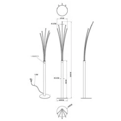 Die knapp 200 cm hohe Lampe mit inkludiertem 36 Watt Leuchtmittel bringt erleuchtende 2900 Lumen zur Geltung bei einer angenehmen warmweißen 3000 Kelvin Lichtfarbe.
