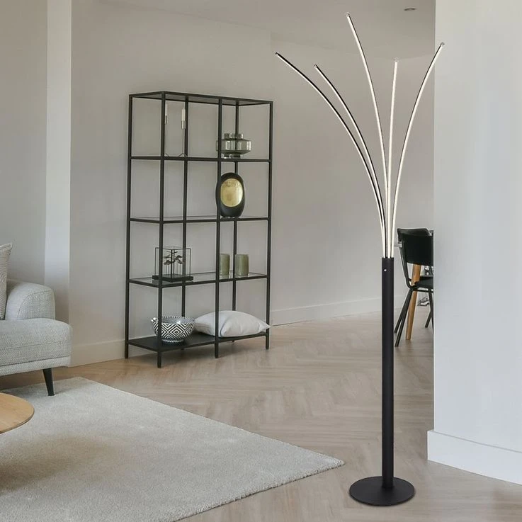 Diese Stehleuchte aus schwarz-mattem Metall und opal-weißem Kunststoffglas ist ein moderner Blickfang in Ihrem Zuhause. Mit dem inkludierten Touchdimmer und dem 1,8m langen Kabel findet sich ein Platz in jeder Ecke Ihres Wohnraums.