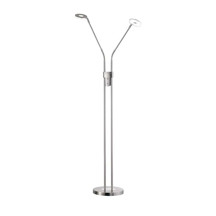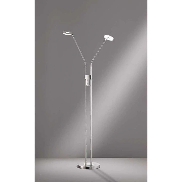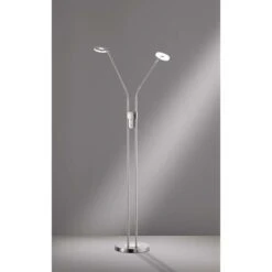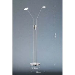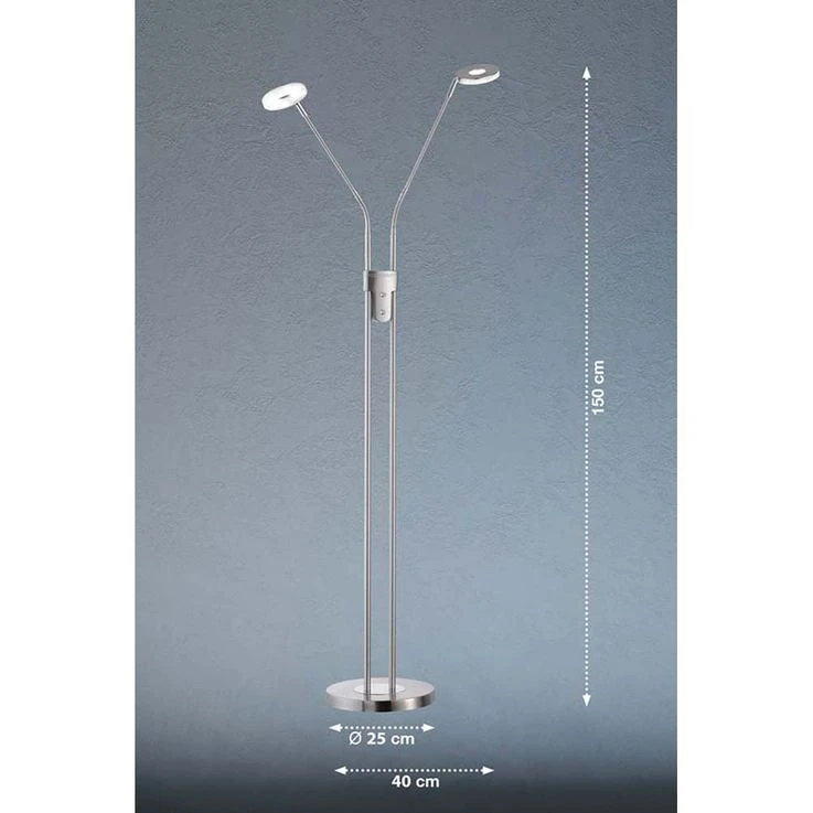 Suchen Sie noch nach einer gemütlichen Zimmerbeleuchtung für die Leseecke und als Alternative zum hellen Deckenlicht? Dann suchen Sie in Gedanken schonmal nach einen perfekten Platz für diese dekorative Stehleuchte. Auf den ersten Blick ist es eine schlichte Leuchte, doch auf den zweiten Blick verbergen sich in ihr zahlreiche Features. Lassen Sie uns diese doch im Folgenden gemeinsam entdecken. Leuchte mit beweglichen Armen Meistens ist das Licht im Raum doch nie da, wo es wirklich gebraucht wird. Dieses Problem löst die zweiflammige Stehleuchte Dent durch zwei bewegliche Arme. Sie können das Licht genau dort ausrichten, wo Sie es haben wollen. Stellen Sie die Leuchte zum Beispiel neben die Couch und richten Sie den Lichtkegel auf ihr Buch und wieder nach oben, wenn Sie den Raum allgemein beleuchten wollen. Zudem haben Sie die Möglichkeit, die einzelnen Lampen separat ein- und auszuschalten, je nachdem, ob Sie es heller oder schummriger haben möchten. Stehleuchte mit dimmbaren LED Die beiden Leuchtmittel im Fluter und in der Leselampe können separat voneinander an- und ausgeschaltet werden. Zudem ist das CCT Farbspektrum in 3 Stufen dimmbar. Über einen Tastdimmer können die Lampen sogar stufenlos gedimmt werden, damit Sie es sich zu jeder Tages- und Nachtzeit so richtig gemütlich machen können in Ihren Räumen. Zeitloses Design aus Metall in dezenten Farben Der Fuß der Leuchte und auch das Gestell sind aus Metall gefertigt. Die Farbe in Nickelfarben matt & Chrom fügt sich zeitlos-schön in jede Raumausstattung ein, so dass Sie nicht nur heute, sondern auch morgen noch Freude an dieser Leselampe haben. Darüber hinaus verzichtet die Leuchte auf alle überflüssigen Schnörkel und Detail. Wir freuen uns auf Ihre Bestellung und wünschen Ihnen viel Freude mit unserer Stehleuchte Dent.