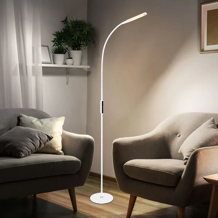 Man kann nämlich mittels des Drei-Stufen-Lichtfarben-Schalters zwischen fünf verschiedenen Lichtfarben wählen von 2700K bis hin zu 5700K: Dadurch lässt sich die Stehleuchte an verschiedene Situationen anpasssen: z. B. gemütliche Stimmung mit warmweißem Licht oder konzentriertes Arbeiten mit universalweißem Licht.