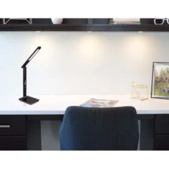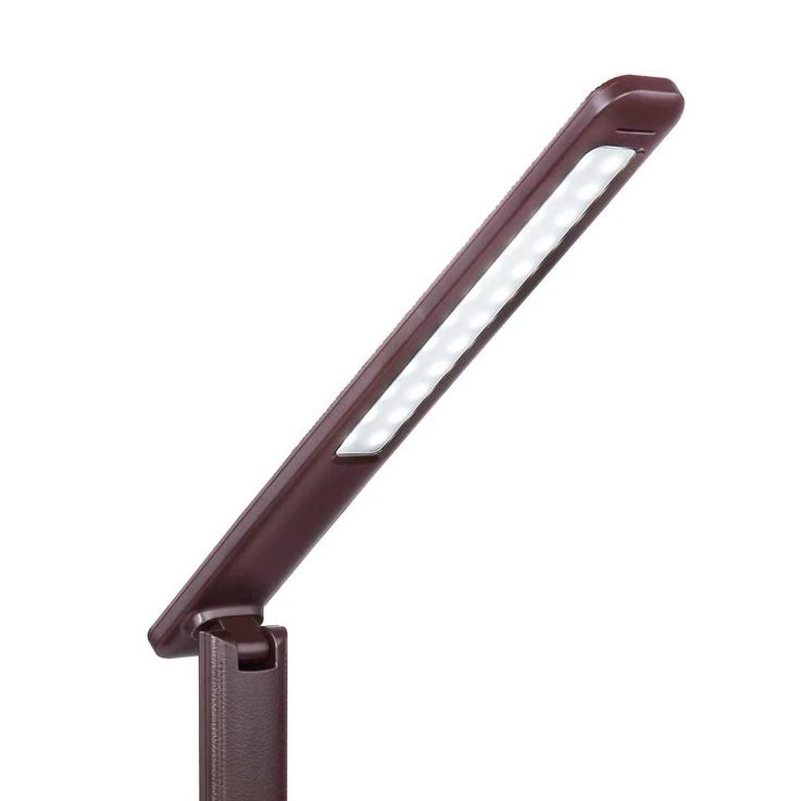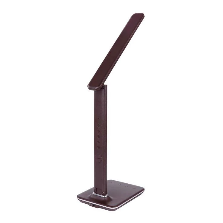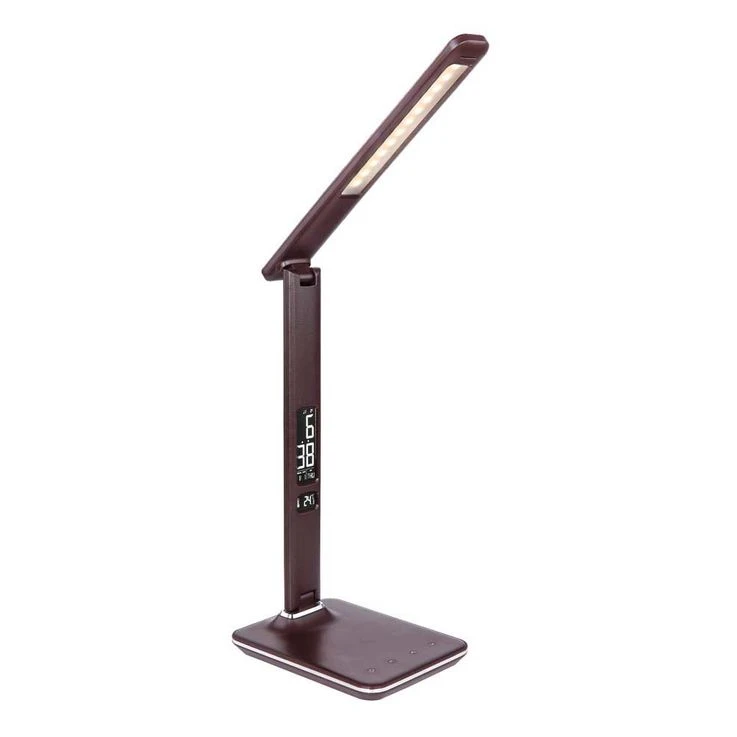 Diese technikaffine Tischleuchte TANNA besteht aus dunkelbraunem Kunststoff in Lederoptik kombiniert mit dezenten Chromelementen. Die Anzeige auf dieser ca 53cm hohen Bürolampe gibt Auskunft über die Uhrzeit, Datum und Temperatur. Das 7 Watt LED Leuchtmittel leistet bis zu 278 Lumen starkes Licht. Die Lichtfarbe dieser dimmbaren Leuchte ist in drei Stufen änder- bzw. fixierbar: warme 3000 Kelvin, neutral-weiße 4500 Kelvin und kalte 5500 Kelvin. Diese Schreibtischleuchte verfügt über einen Touchdimmer. Die wunderschöne Innenleuchte ist universell in Ihren Wohn- und Arbeitsbereich einsetzbar.