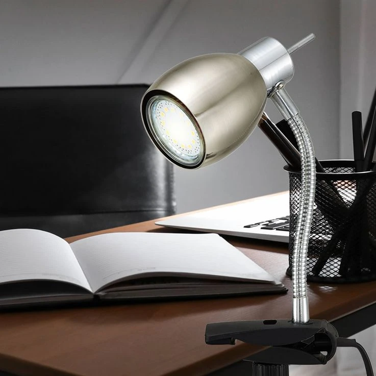Mit diesem nickel matten Klemmstrahler kommt wieder tolles Licht auf Ihren Schreibtisch.