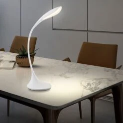 Bei der Anfertigung dieser Lampe wurden ein schönes, weißes Metall, Acryl und Kunststoff gewählt. Der Spot ist verstellbar und dient somit einer individuellen Benutzung. Ebenfalls ist ein Touchdimmer vorhanden, der für die Regulation der Helligkeit zur Verfügung steht. Die Lichtfarbe von 3000K wird als angenehmes Warmweiß empfunden und die Lichtstärke von 400 Lumen wurde perfekt dazu abgestimmt.
