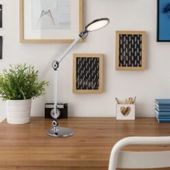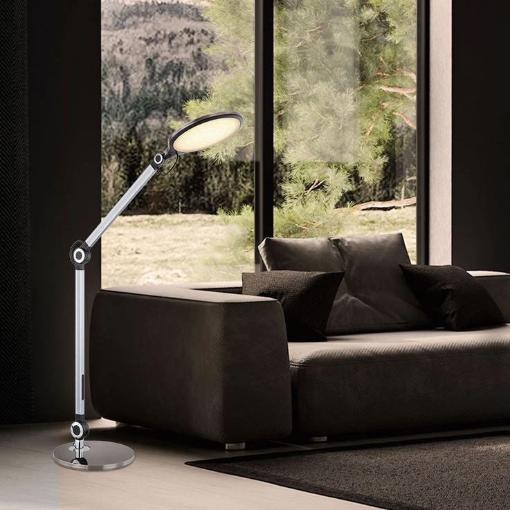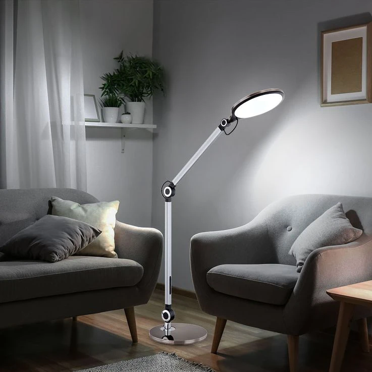 Diese formschöne Tischleuchte überzeugt durch ihre neutrale Materialkombination und schlichten Design. Durch das inkludierte 10 Watt LED Leuchtmittel leistet diese Lampe ein bis zu 660 Lumen starkes Licht. Die Gelenke sind individuell verstellbar und somit lässt sich der Leuchtenkopf wunderbar fokussieren. Mit der Touchfunktion und dem Touchdimmer wird das Ein-/Ausschalten dieser LED Lampe zu einem besondern Leuchterlebnis. Die Lichtsfarbe dieser 103,5 cm hohen Tischleuchte lässt sich von warmweißen (3000 Kelvin) bis hin zu kaltweißen (6000 Kelvin) Licht verstellen und fixieren. Die Tischlampe erfreut mit Sicherheit jeden Besitzer mit ihrem einmaligen Charme.