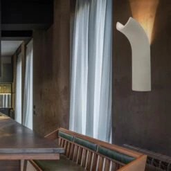 Diese auffällig formschön gebogene Wandlampe punktet eindeutig mit ihrem Design.