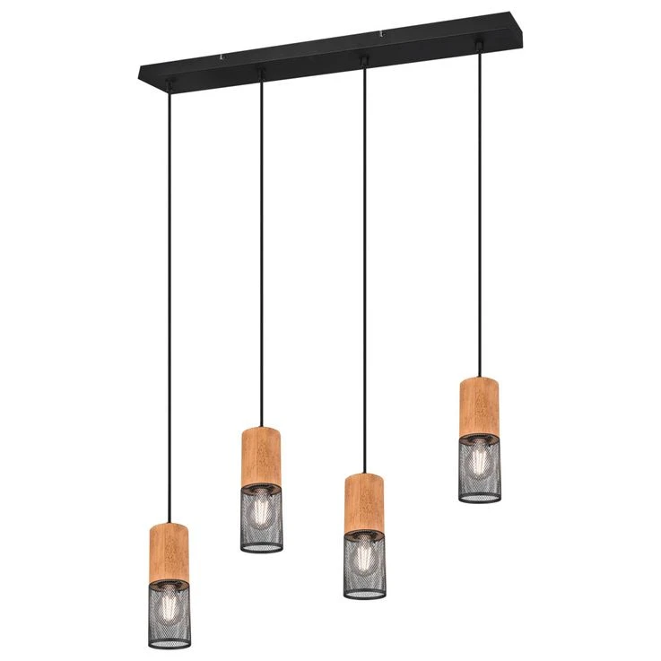 Pendellampe, Gitter, Holz, Schwarz, H 150 Cm