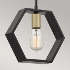 Der geometrische Rahmen des 1LT -Anhängers Bismarck ist in der Erde schwarz abgeschlossen, was die kühnen Linien seines modernen Designs betont. Lackierte goldene Sockets dienen sowohl in Ton als auch in Stil als perfekter Kontrast und fügen Drama und Tiefe hinzu.