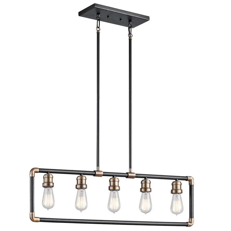 Die Imahn-Kollektion weist industrielle Merkmale auf, indem sie die Inspiration von freiliegenden Rohrleitungen nutzt und schwarze und natürliche Messingoberflächen mischt. Um den minimalistischen Stil weiter zu betonen, empfiehlt sich eine LED-Filamentlampe im Edison-Stil.