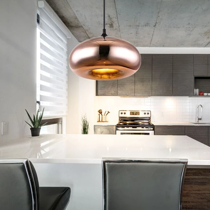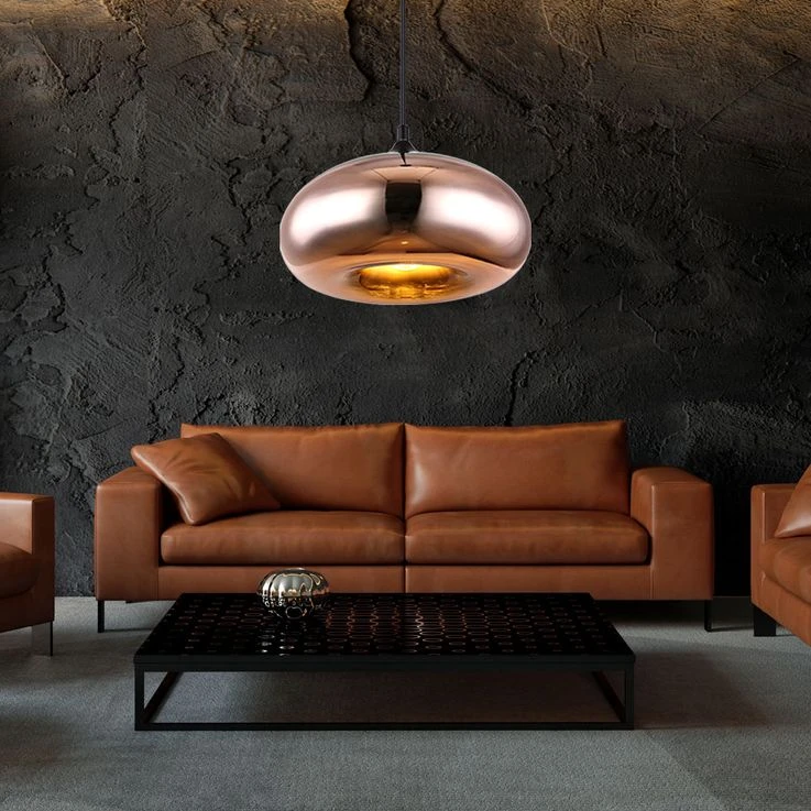 - DESIGN: Eine Hängeleuchte mit auffallender Farbe und rund geformt. Die ebenfalls abgerundete Öffnung des Lampenschirms gibt der Leuchte ihre einzigartige Form und Erscheinung.
