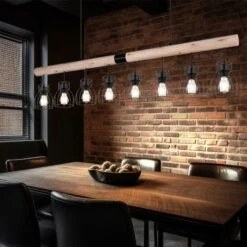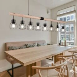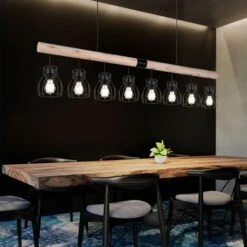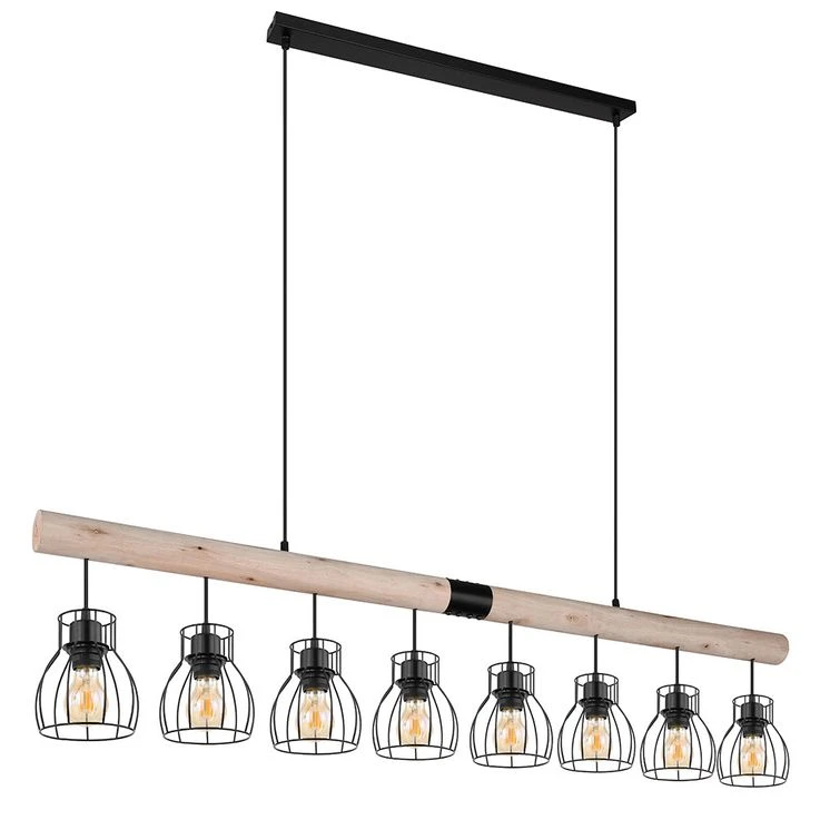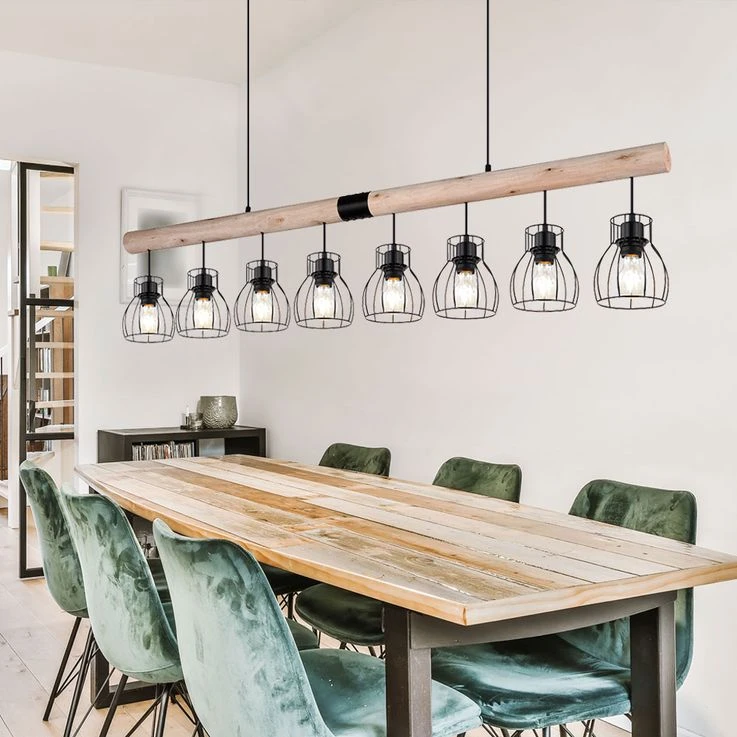 - DESIGN: Das tolle Landhausdesign der Leuchte zeichnet sich durch den Natur-Holzbalken aus, an welchem sich acht Gitterschirme aus Metall befinden, was diese Lampe zum Hingucker macht!