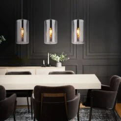 - DESIGN: Diese Leuchte ist ein echter Hingucker. Die rauchfarbenen, gläsernen Lampenschirme verleihen der Leuchte das gewisse etwas.