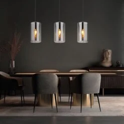 Pendelleuchte, Metall, Glas, Rauchfarben, H 120 Cm