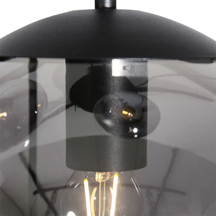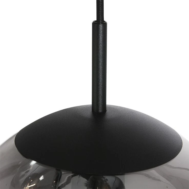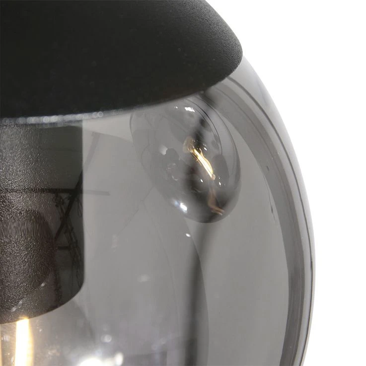 Pendelleuchte, Metall Glaskugel, Schwarz Smoke, H 375 Cm