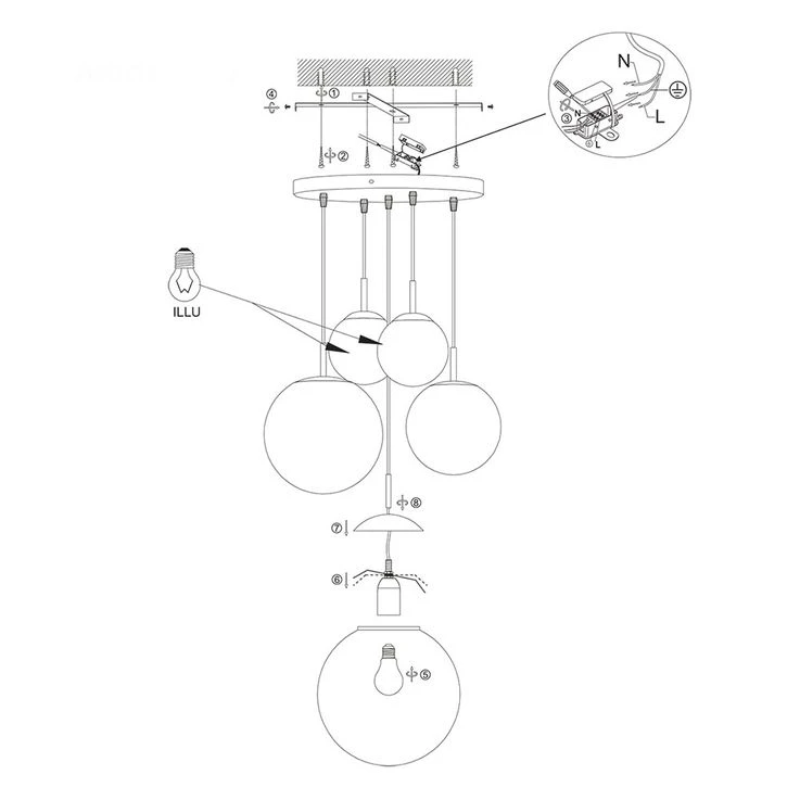 - LEUCHTMITTEL: In die Pendelleuchte können fünf E27 Leuchtmittel mit einer max. Leistung von jeweils 40 Watt eingesetzt werden. Über Lichtstärke und Lichtfarbe können Sie frei entscheiden.