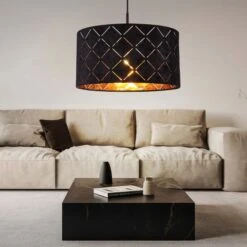 Diese einzigartige schwarze Hängeleuchte punktet mit ihrem Design.
