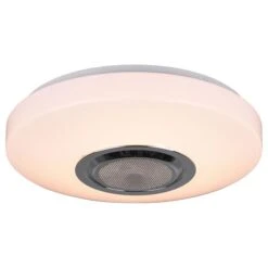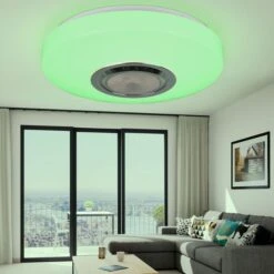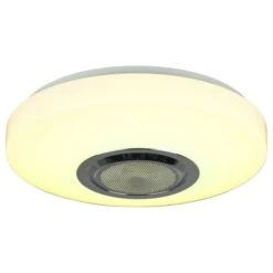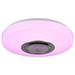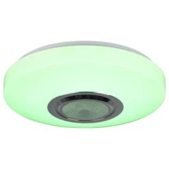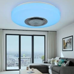 Das 10 Watt leistungsstarke Leuchtmittel strahlt rund 1100 Lumen aus und es besteht die Möglichkeit durch Betätigen der Fernbedienung, die Leuchte zu dimmen. Durch diese Steuerung spiegelt diese hochwertige Deckenleuchte alle Lichtfarben eines Tagesablaufs wieder. So unterstreichen Sie nicht nur durch die Lichtfarbe der Leuchte die Atmosphäre in Ihrem Wohnraum, sondern können das Ganze zusätzlich mit der passenden Musik hinterlegen!