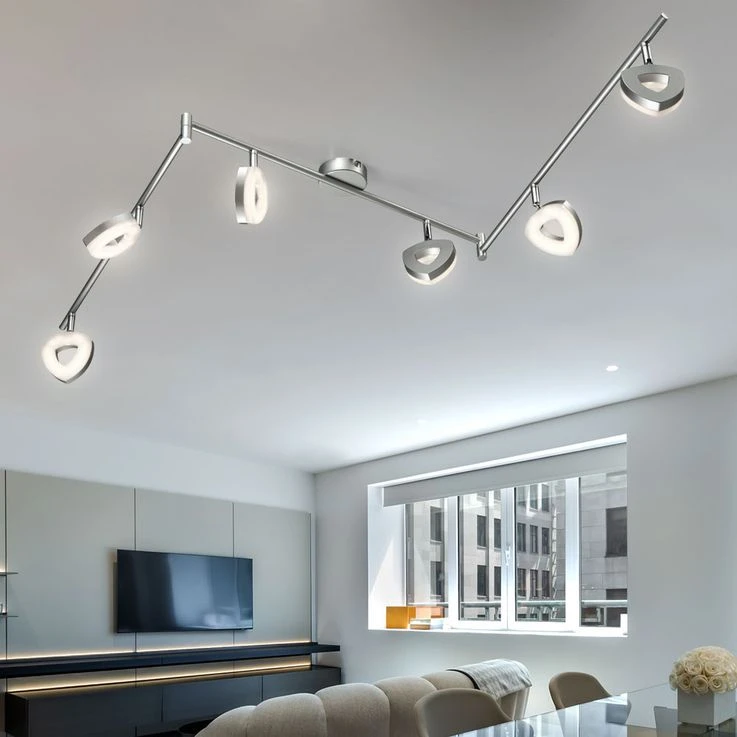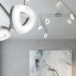 Das einfache und zugleich elegante Design macht es dieser Leuchte leicht, sich in den bestehenden Einrichtungsstil einzufügen. Dabei setzt die Leuchte stilsichere Akzente und sorgt für eine schöne Beleuchtung. Dank der beweglichen Spots können Sie besondere Akzente in Ihrem Wohnraum setzen.Â