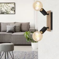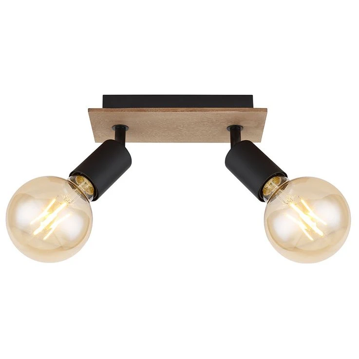Spotstrahler, 2-flammig, Holz, Schwarz Matt, Braun, L 21 Cm