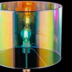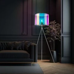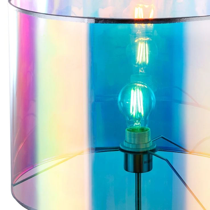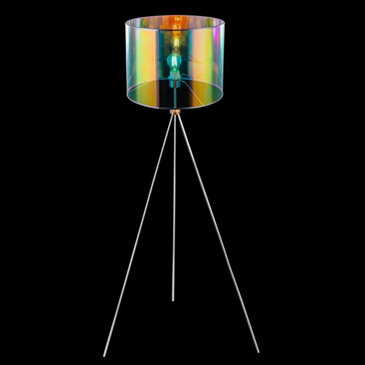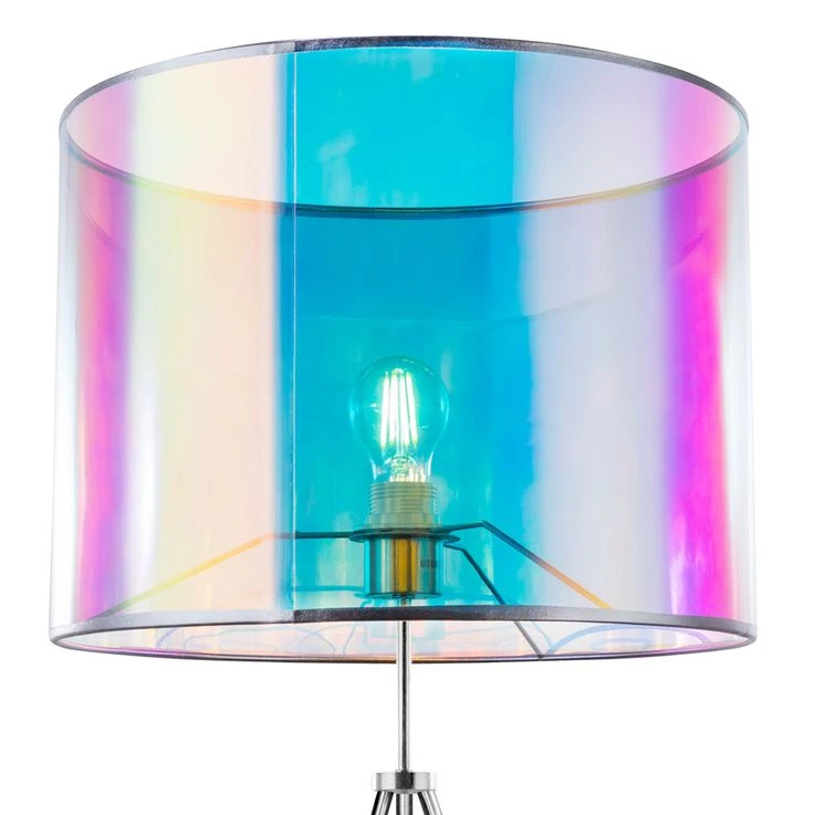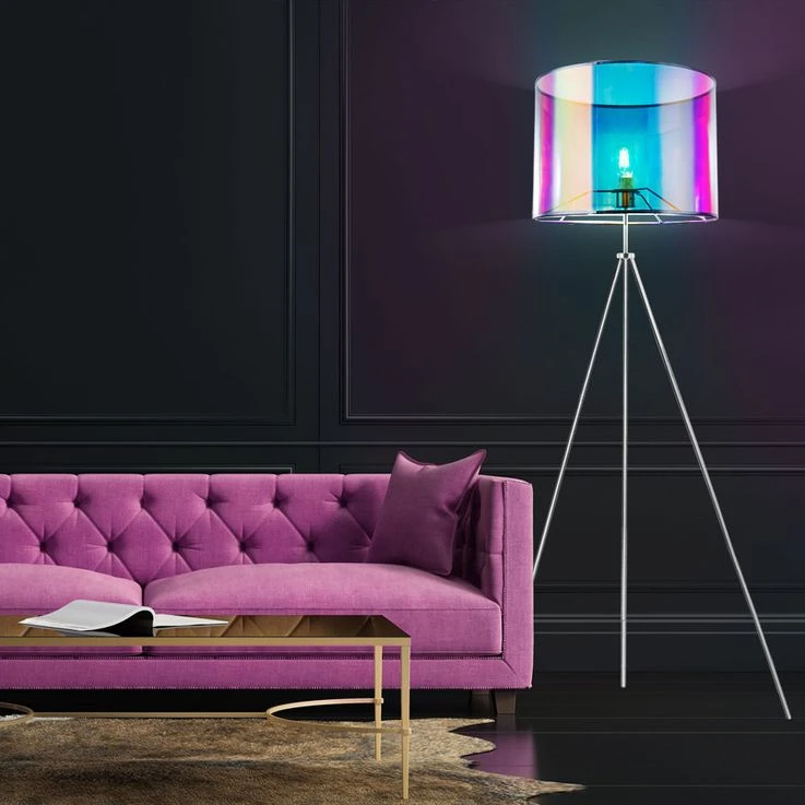 Der Lampenschirm besteht aus mehrfarbigem Textil und Kunststoff in einem Regenbogen Design und wird durch ein nickel-mattes Gestell vervollständigt. Dank des Kabelschalters können Sie die Leuchte bequem von der Couch ein-und ausschalten.