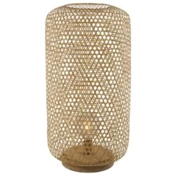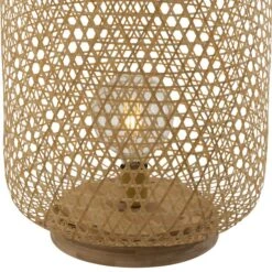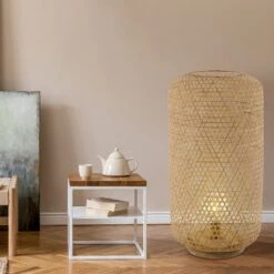 Stehlampe, Boho Bambus Schirm, Geflochten, Braun, H 77 Cm