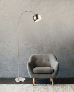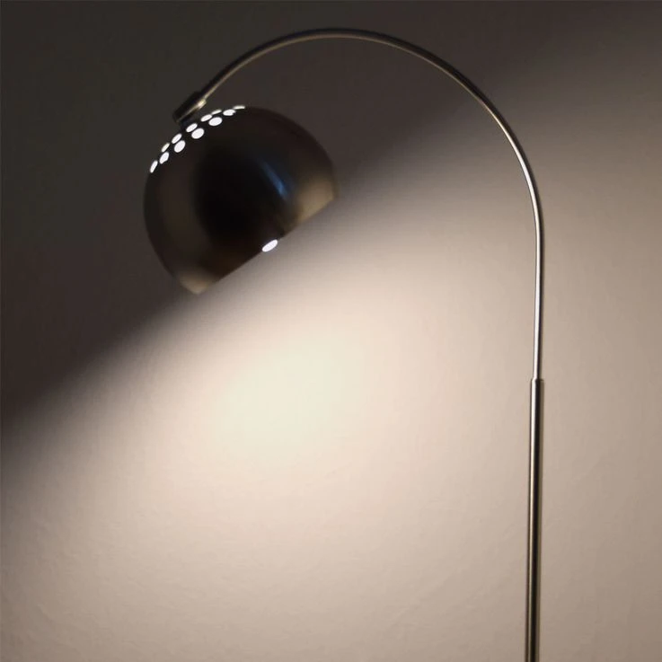 Die 150cm hohe Innenleuchte ist oben gebogen und mündet beim eleganten runden Lampenschirm. Diese Wohnleuchte verfügt über ein 1,8m langes Kabel, was es möglich macht die Position der Lampe zu verändern. Die Innenleuchte ist mit einer E27 Fassung ausgestattet und ermöglicht Ihnen somit ein Leuchtmittel Ihrer Wahl zu nutzen (max. 60 Watt). Wir empfehlen LED-Lampen aufgrund ihrer Stromersparnis und Langlebigkeit.